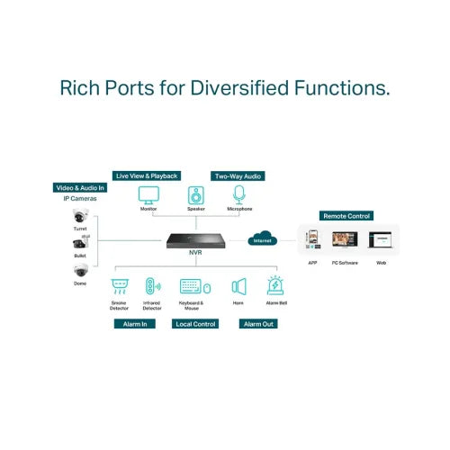 Equipped with 4MP recording resolution and H.265+ video compression, the NVR4032H ensures high-quality video while optimizing storage and bandwidth. Remote access via the VIGI App or web browser allows real-time monitoring from anywhere, making it ideal for offices, shopping malls, factories, and large-scale security installations.